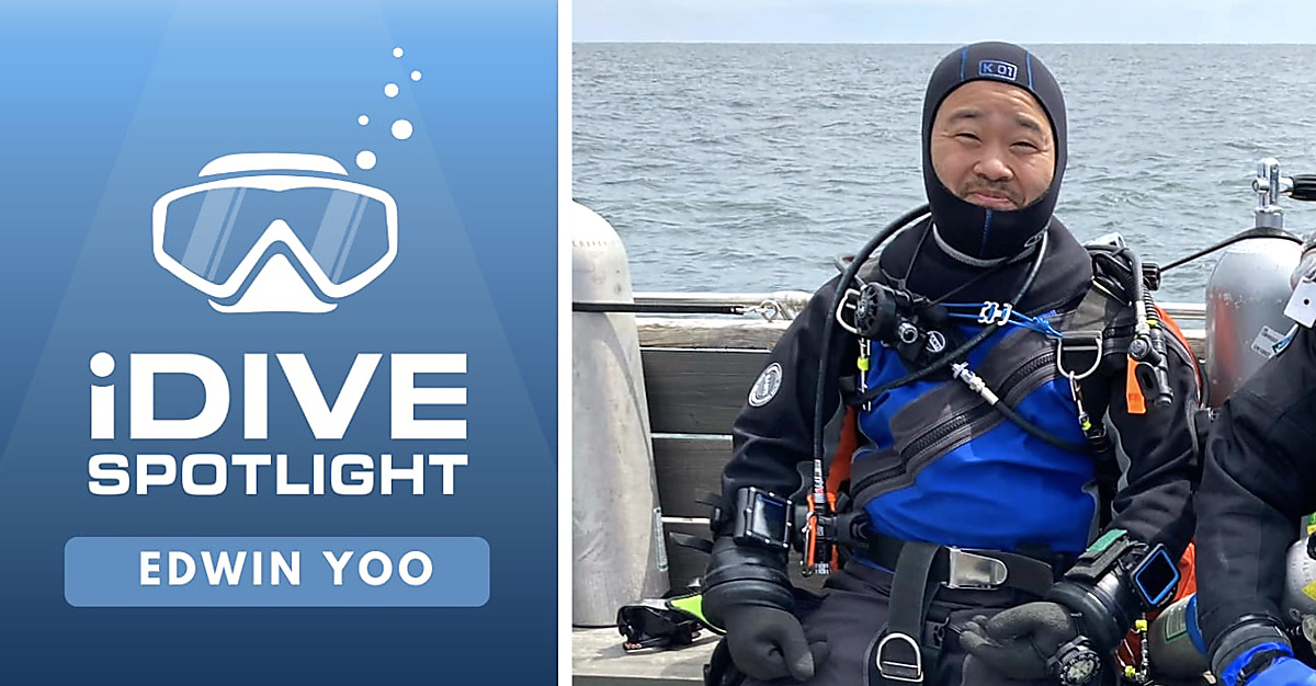 In 2002, a few years after graduating college, Edwin had a trip planned for Costa Rica. It was then that he decided to get Scuba Diving certified in Somerville, MA. He recalls the certification dives in Rockport, MA that were brutally cold despite the 7mm farmer john wetsuit and three finger gloves. The visibility must have been less than 5 feet and he thinks he saw one striped bass. Despite the miserable experience, he was hooked by the incredible experience of breathing underwater, but he vowed never to dive in New England again.